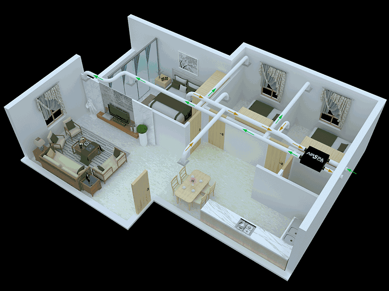 (德國艾爾斯派中央新風系統工作原理圖)